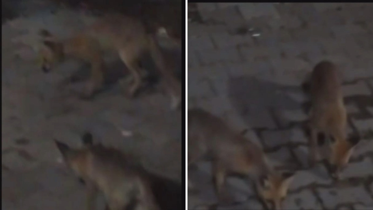 Tilkilerin bulunduğu alanda iki de kirpi görüldü. Bir süre sonra bahçeden ayrılan tilkiler ile kirpilerin o anları cep telefonu kamerasıyla kaydedildi.