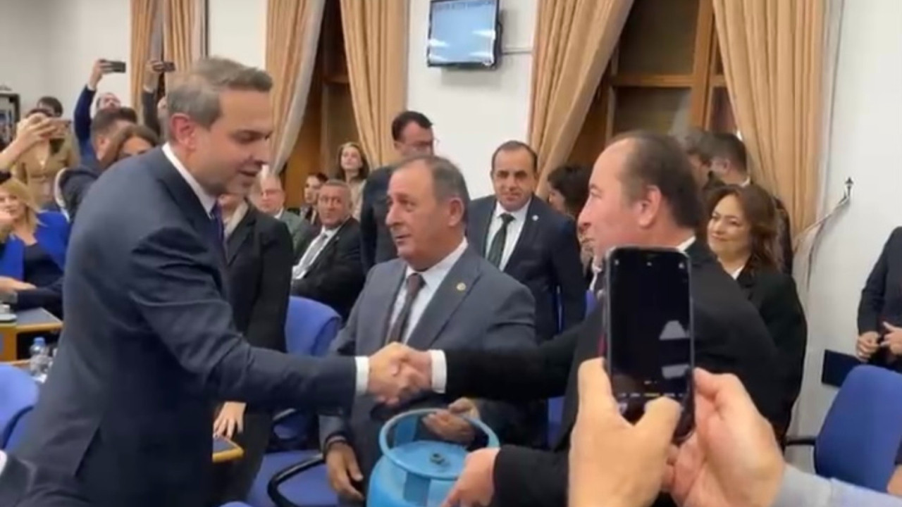 CHP Karabük Milletvekili Cevdet Akay, Bakan Alparslan Bayraktar milletvekillerini selamlamak için geldiği sırada masasındaki boş mutfak tüpünü kaldırarak “Vatandaşın mutfağı yanıyor, tüpler boş” diyerek seslendi. Bayraktar Akay’a, “Çünkü doğal gaz kullanıyorlar gerek yok” karşılığını verdi.