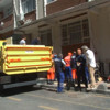 Öte yandan evin girişi dar olduğu için pencere ve merdivenin olduğu kısımdaki demir parmaklıklar kesilip iş bitince de kaynak ile tekrar takıldı.