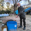 Burada, dışarıda plastik güğümler var, fıçıdan kesilme, güneşte ısıtıyorum, banyo yerinde yıkanıyorum güneş suyu ile.