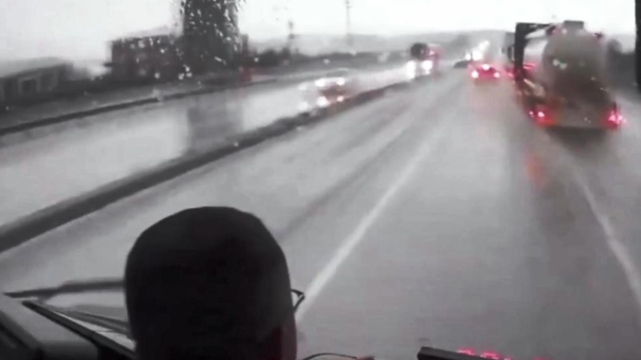 Samsun'da bir otobüs şoförü, ani şerit değiştirerek önüne çıkan tanker bağlı çekiciyi zamanında fark edince muhtemel bir facianın eşiğinden dönüldü.
