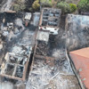 Çanakkale'nin Bayramiç ilçesinde çıkan orman yangınında, boşaltıldıktan sonra alevlere teslim olan Saçaklı köyünde dron ile görüntülendi.