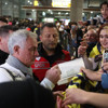 Uçakla Mersin'deki Çukurova Uluslararası Havalimanı'na inen sarı-lacivertli kafileyi, taraftarlar karşıladı. Tezahüratta bulunan taraftarlar, teknik direktör Jose Mourinho'ya çiçek verdi. Mourinho da taraftarların formalarını ve kitabını imzaladı.