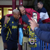 Havalimanında güvenlik şeridinin dışında bekleyen taraftarlar, futbolculara tezahüratlarla eşlik edip çiçek takdim etti. Bazı futbolcular taraftarların uzattığı formaları da imzaladı.