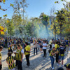 Yoğurtçu Parkı'nda toplanan bazı taraftarlar da meşaleler ve çalınan davul, zurna ile maçın havasına girdi.