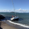 Saatteki hızı yer yer 70 kilometreye ulaşan fırtına nedeniyle Turgutreis'te tonozdan kopan yaklaşık 12 metre uzunluğundaki yelkenli tekne sürüklenip, karaya oturdu.