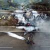 Malatya'nın Darende ilçesinde otobüse çarptıktan sonra duvara vuran TIR yandı.