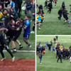 Hakemin ilk yarıyı bitiren düdüğü çalmasıyla iki takım arasında yumruklu, tekmeli kavga başladı.