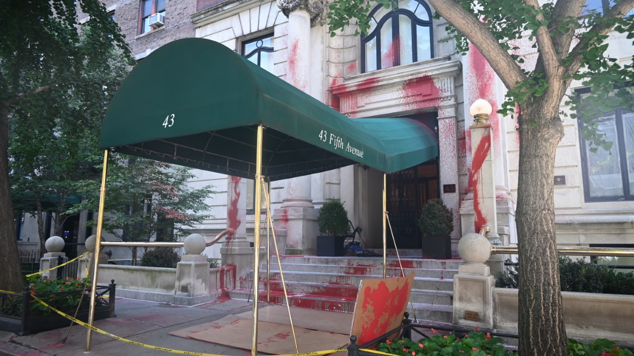 Edinilen bilgilere göre, Filistin yanlısı bir protestocu, Kahn'ın yaşadığı binanın girişine kırmızı boya döktü.