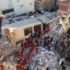 Kocaeli'nin Gebze ilçesindeki 6 katlı bir bina yan yatarak çöktü. Binada kalan beş kişilik aileye ulaşmak için çalışmalar sürerken yıkılan apartman drone ile havadan görüntülendi.