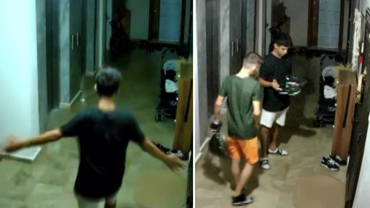 Kimlikleri tespit edilemeyen 2 genç, bir apartmana girdi. Evin önündeki ayakkabıları gören şahıslar, göbek attı. Ardından gençler ayakkabıları inceledikten sonra alıp kaçtı.
