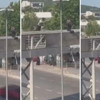 Direğe tutunan genç, kayarak yola indi. Yaşananlar çevredeki bir kişi tarafından cep telefonu ile kaydedildi.