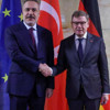 Almanya Dışişleri Bakanlığı'na geçen Bakan Fidan, Alman mevkidaşı Johann Wadephul tarafından kapıda karşılandı. İki bakan daha sonra ikili görüşmeye geçti.