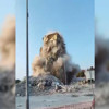 Geçen gün bir bölümü yıkım sırasında çöken binanın geri kalan kısmı da çöktü. Toz bulutları arasında kalan iş makinesi operatörü son anda kurtuldu.