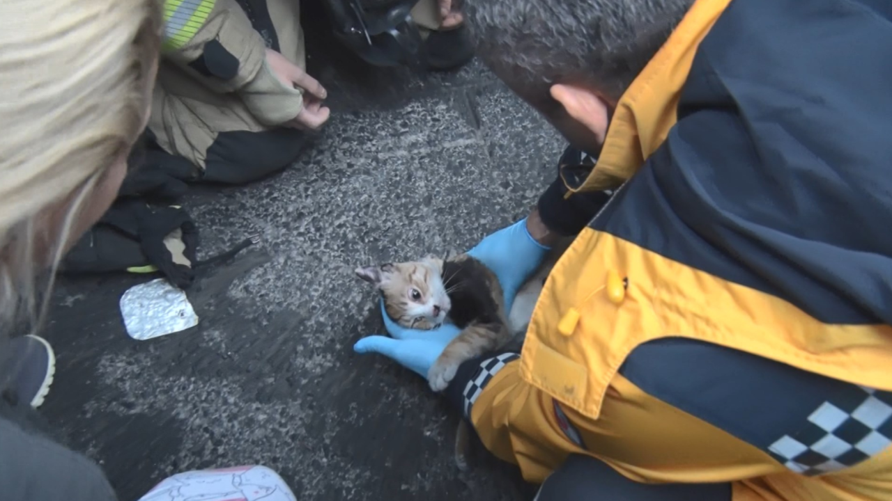 Kurtarılan kedi sahibi tarafından olay yerinden götürüldü.