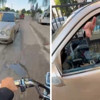 Adana’da ters yönden caddeye giren bir otomobil sürücüsü, kendisini uyaran motosikletliye verdiği yanıtla tepki çekti