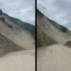 Artvin-Şavşat Karayolu'nun 25. kilometresinde meydana gelen heyelan anı saniye saniye kameraya yansıdı.