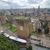Antalya'da Roma Dönemi'ne ait Kale Kapısı burçlarının çevresi, günde 64 kez geçen eski tip tramvayların oluşturduğu titreşimler nedeniyle yıkılma riskine karşı tel örgüyle kapatıldı.
