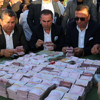 Bir ton etin tüketildiği düğüne aşiret liderleri, kanaat önderleri, belediye başkanları, siyasi parti temsilcileri, sivil toplum örgütleri, iş insanları ve çok sayıda davetli katıldı. Yaklaşık 5 saat süren takı sonunda damada 6,5 milyon TL nakit, geline ise 2 kilo altın takılırken, masaya konulan paraları ise 14 kişi saydı.
