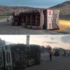 Devrilen tırın römorku, seyir halindeki S.Ç.’nin kullandığı TIR'a çarptı. 112 Acil Çağrı Merkezi’ne yapılan ihbar üzerine olay yerine sağlık, jandarma ve polis ekipleri sevk edildi.