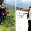 Rize'de Çayeli ilçesinde çay üreticisi Aydın Sarı, çay bahçesinde gübre atmak için ilkel teleferiği kullanmak istedi.