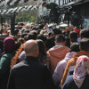 Kalabalığı kontrol altına almaya çalışan polis ekipleri de zaman zaman ezilme tehlikesi geçirdi.