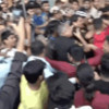 Mumbai kentindeki bir mağazanın önündeki kalabalık arasında tansiyon yükseldi. Sırada bekleyenler birbirine girdi.