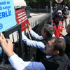 Hükümetin 8’inci toplu sözleşme döneminde memur ve memur emeklilerine verdiği zam teklifini protesto etmek için iş bırakan Türkiye Kamu Çalışanları Sendikaları Konfederasyonu (Kamu-Sen) üyeleri, Hazine ve Maliye Bakanlığı önünde basın açıklaması yaptı.