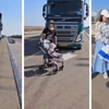 Paylaşımda yer alan görüntüde, bir grup aşırı sağcı İsraillinin Gazze'ye gönderilen yardım tırlarının önünü kestiği görüldü. Bir aşırı sağcı içinde bebek olan bebek arabasıyla tırların önünde durdu.