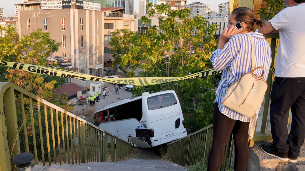 Maltepe'de kontrolden çıkan servis otobüsünün köprülü kavşaktan düşmesi sonucu 1'i ağır 8 kişi yaralandı.