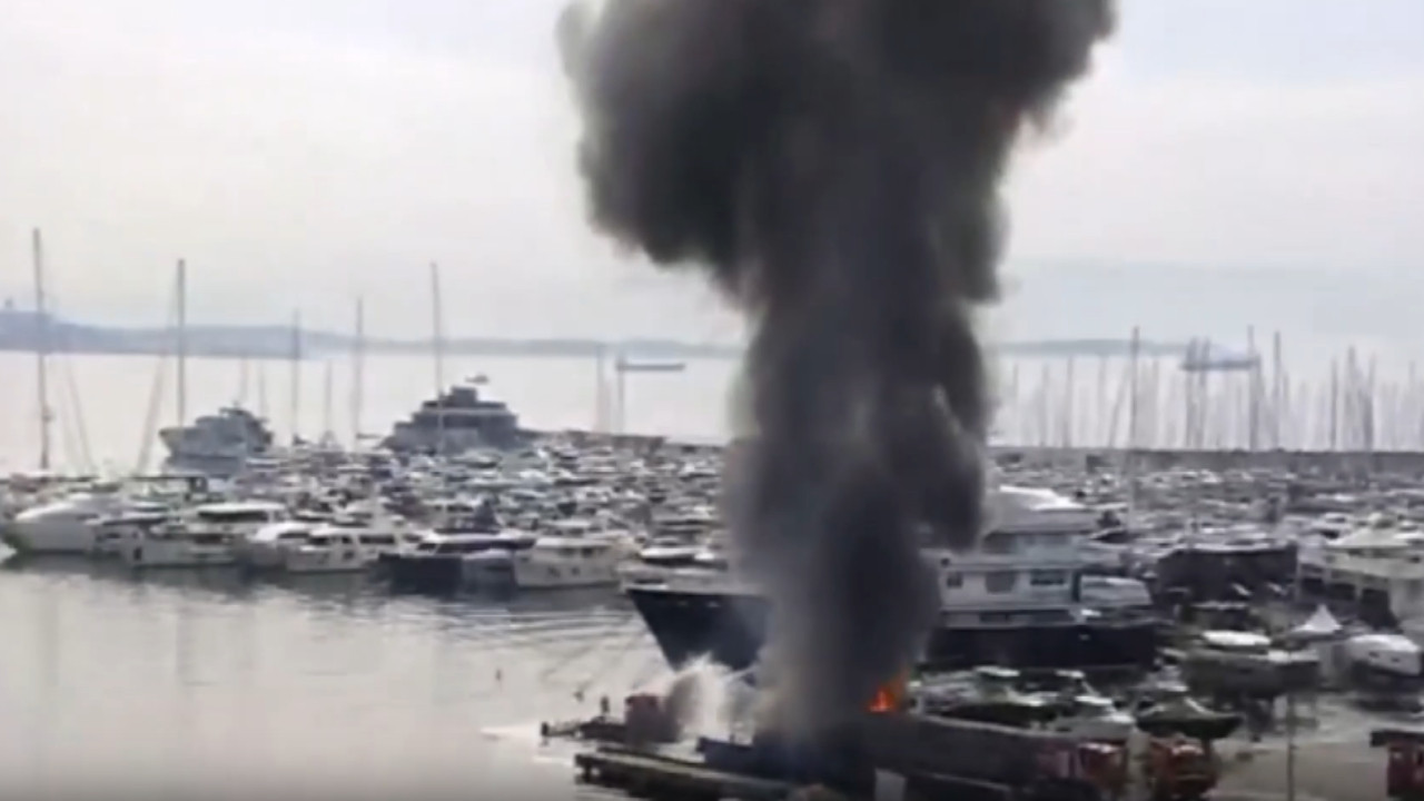 Batı Mahallesi Sahil Bulvarı'nda yat limanındaki yakıt istasyonunda yer alan atık yağ depolama alanında, henüz belirlenemeyen nedenle yangın çıktı.