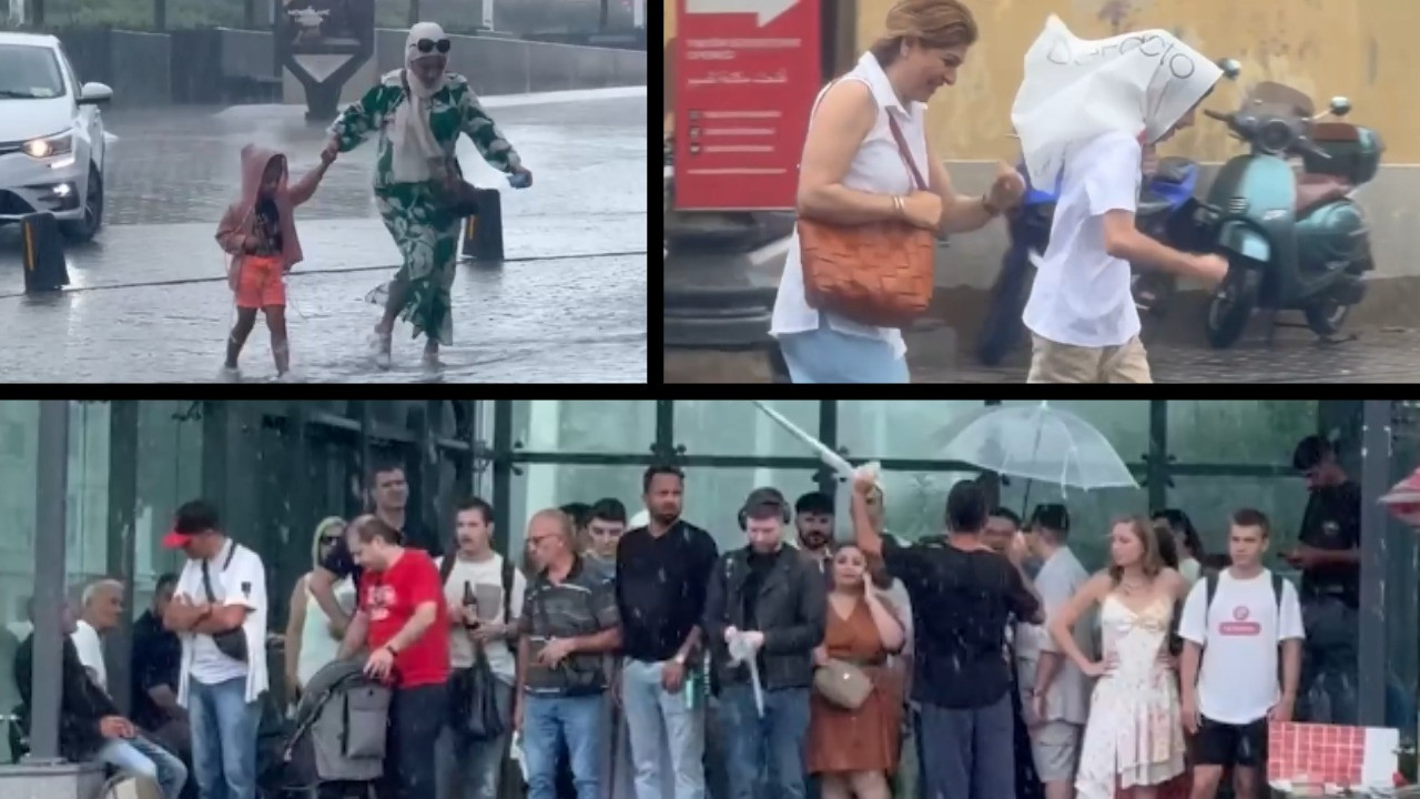 Yağışa yakalanan bazı turist ve vatandaşlar şemsiyeleri ile yağmurdan korunurken kimisi de koşarak kaçmaya çalıştı.