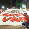 Meşale yakan, çeşitli sloganlar atan ve halay çeken işçiler, daha sonra "Bu iş yerinde grev var" yazılı pankart açtı. Sendikaların şube başkanları ve işçiler, pankartı büyükşehir belediye binasına astı.