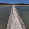İzmir'in Çeşme ilçesindeki Alaçatı Kutlu Aktaş Barajı'nda kuraklık nedeniyle su seviyesinin düşmesi sonucu, eski İzmir-Çeşme kara yolu ortaya çıktı.