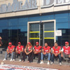 Buca Belediyesi önünde bir araya gelen işçiler bir süre oturma eylemi yaptı.
