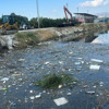 İzmir Halkapınar Deresi’nde biriken çöpler kötü koku yaydı.