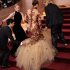 Lopez, törene Stephane Rolland imzalı Jean-Louis Scherrer tasarımı transparan bir vintage elbiseyle çıktı. Kahverengi dantel aplikelerle süslenmiş denizkızı modeli yere kadar uzanan elbise, geceye damga vurdu.