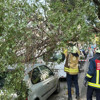 Sokak kenarında bulunan büyük bir ağacın dal kısmı bilinmeyen bir nedenle kırılarak yoldan geçen otomobilin üzerine ve park halindeki bir aracın üstüne düştü.