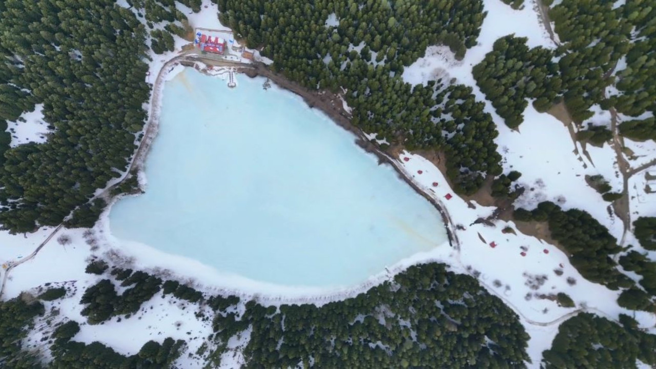 Kalp şeklindeki Karagöl, kışın son günlerinde kartpostallık görüntüler sunuyor