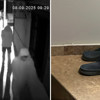 Şüphelilerden biri ise kendi terliklerini apartmanda bırakıp çaldığı ayakkabıyı giydi.