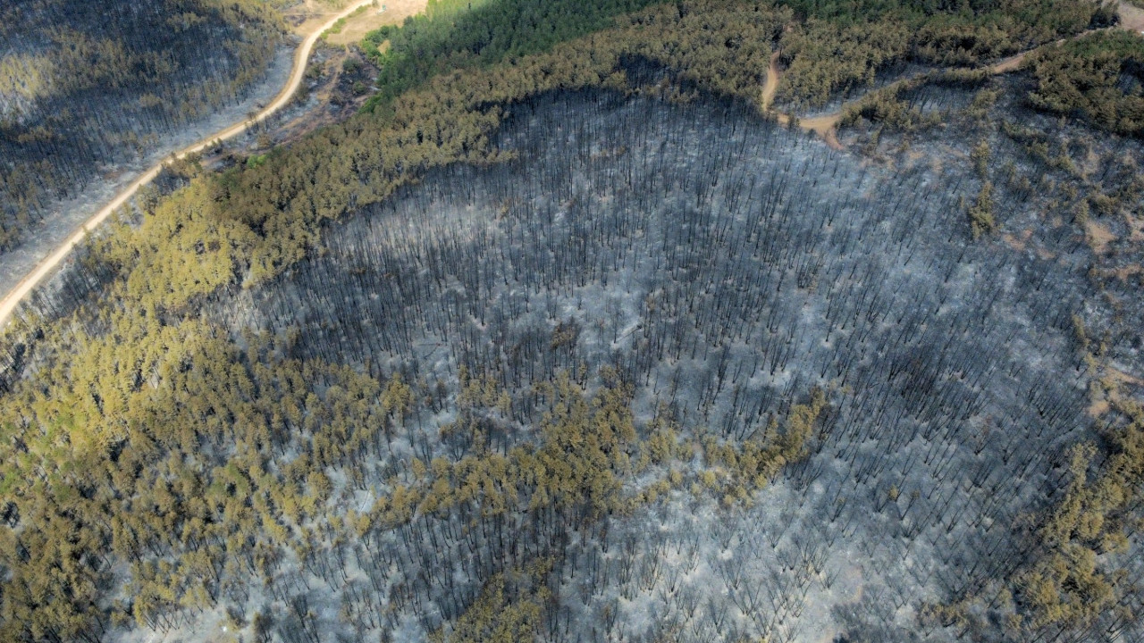 Karabük'ün Eflani ile merkez ilçelerinde çıkan ve büyük ölçüde kontrol altına alınan yangınlarda zarar gören alanlar dronla görüntülendi.