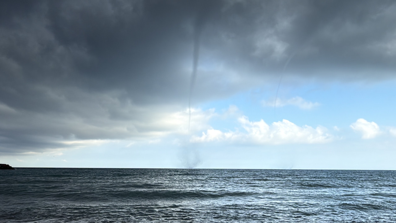 Alaçam açıklarında sabah saatlerinde oluşan hortum, cep telefonu kamerasıyla görüntülendi.