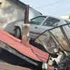 Savrulan otomobil, kaldırımdaki korkulukları aşıp yol seviyesinin altında kalan tek katlı evin çatısına çıktı.