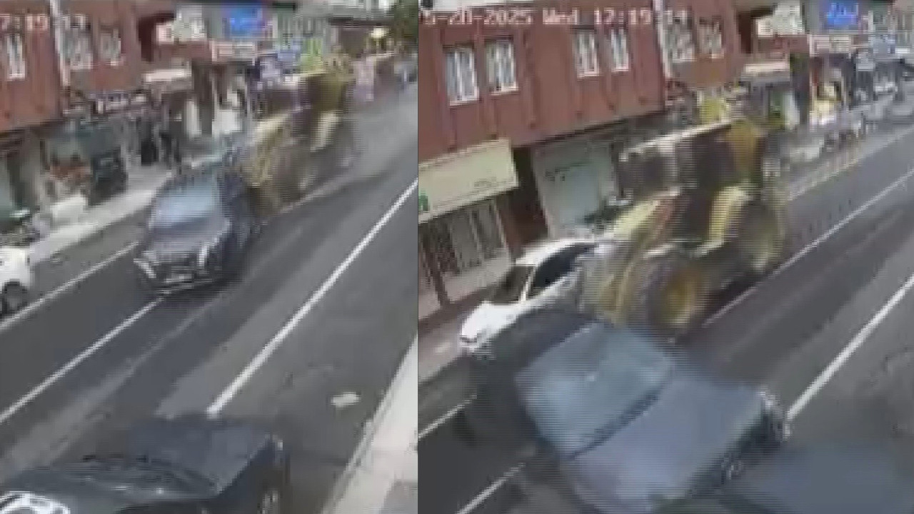 Kepçenin kontrolden çıkarak ilerlediği ve araçlara çarptığı anlar ise kameraya yansıdı.