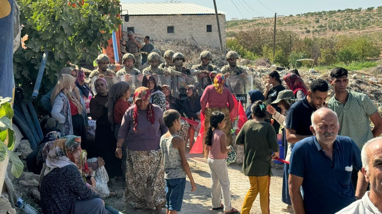 Ellerine Türk bayraklarını alan mahalleli, çalışmaların yapıldığı alanda toplanarak protesto gösterisi düzenledi. Çalışmaların durması üzerine bölgeye jandarma ekipleri sevk edildi.