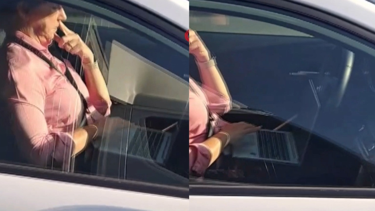 Görüntüler bugün Beykoz Kavacık Kavşağı'nda kayda geçti. Bir kadın sürücünün direksiyon başına kucağındaki dizüstü bilgisayarla geçtiği görüldü.