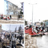 Polis ekipleri çevrede güvenlik önlemleri alırken, itfaiye ve zabıta ekipleri de yola düşen parçaları temizledi.