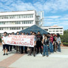 Öğrenciler uygulamayı protesto etmek için Kuzey İdari Bina önünde çamaşırlarını yıkayıp astı.