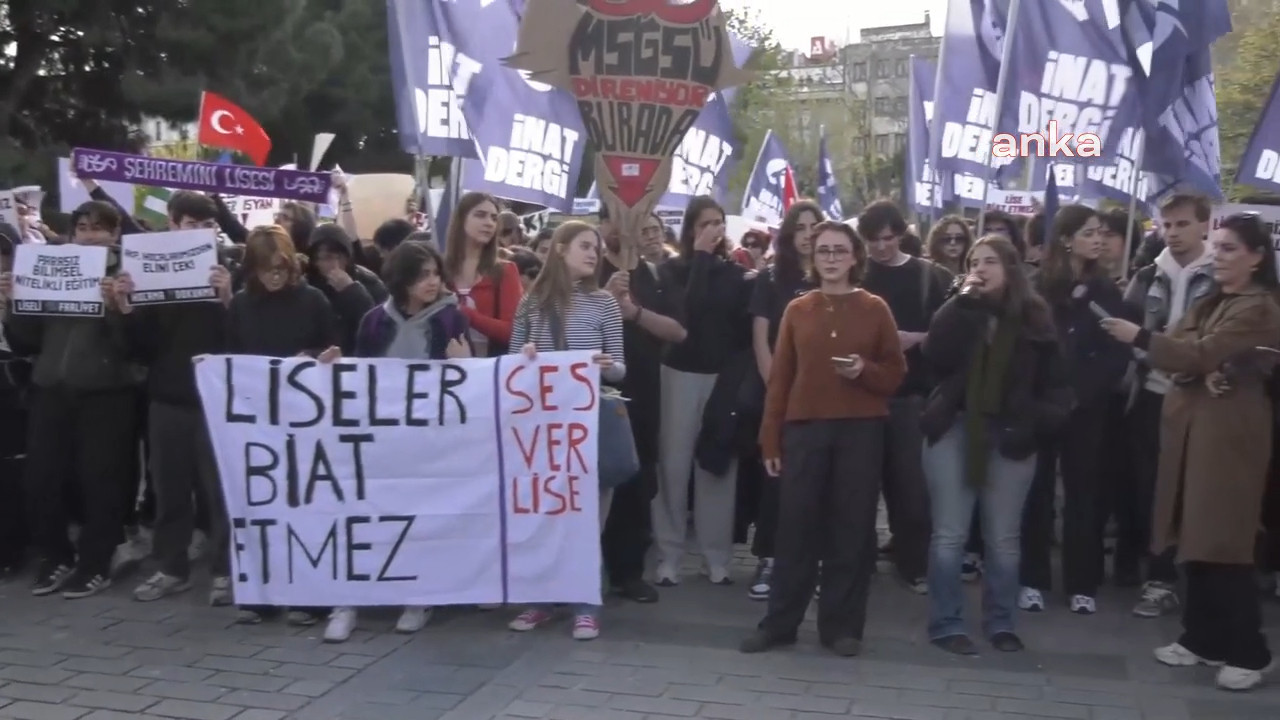 Sultanahmet’teki eylemde “Liseler biat etmez” yazılı pankart açılarak “Liseler bizimdir, bizim kalacak”, “Öğrenciler burada, Yusuf Tekin nerede?” ve “Yaşasın öğrenci dayanışması” sloganları atıldı.