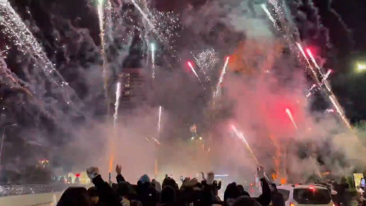 Taraftarların yaktığı havai fişekler gökyüzünü aydınlatırken, o anlar çevrede bulunanların cep telefonlarıyla kaydedildi.